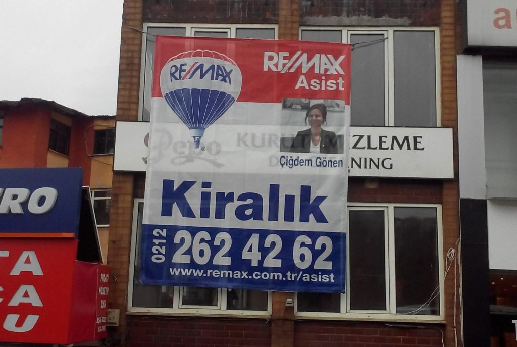Bina cephelerinde inşaat etrafı kaplamada ve emlak afişlerinde,