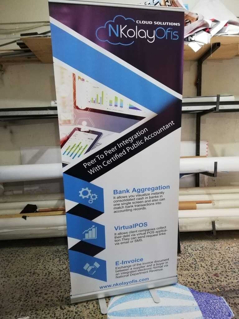 Roll Up Banner, görseli içine saran mekanizmalı, oldukça kullanışlı ve garantili bir reklam ürünüdür. Farklı ebatlarda üretilen ürünler ile tanıtımlar rahatlıkla yapılabilir. Reklam vermek isteyen ya da tanıtımı yapılacak ürünün baskısı ile birlikte kurulum oldukça basit bir şekilde tamamlanır.